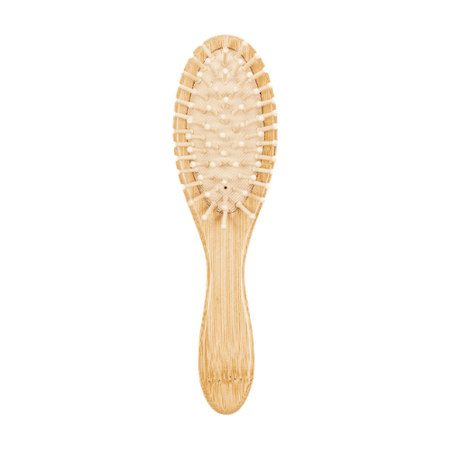 Een ‘kleine’ ontklittende haarborstel met bamboe borstelharen met ronde punten zorgt voor meer comfort en zachtheid tijdens het borstelen.